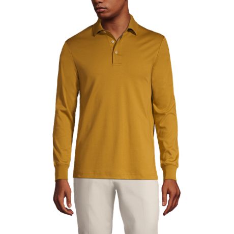 Men S Long Sleeve Supima Polo Shirt Traditional Fit Lands End